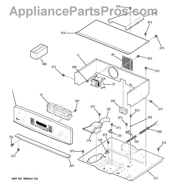 This control cooling fan assembly circulates air through the oven's control compartment to remove heat. By keeping the console and electronics cool during and after cooking, it helps prevent overheating and protects sensitive components.