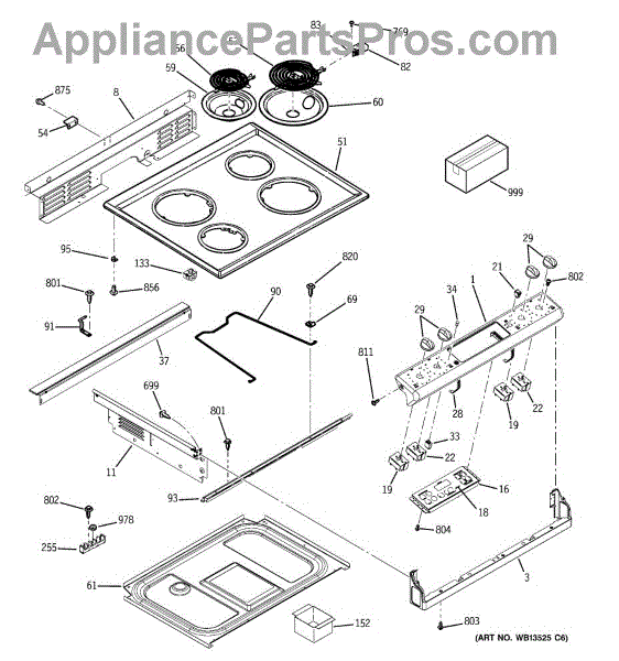 Parts for Ge JDP39DN2WW: 01 - Control Panel & Cooktop Parts