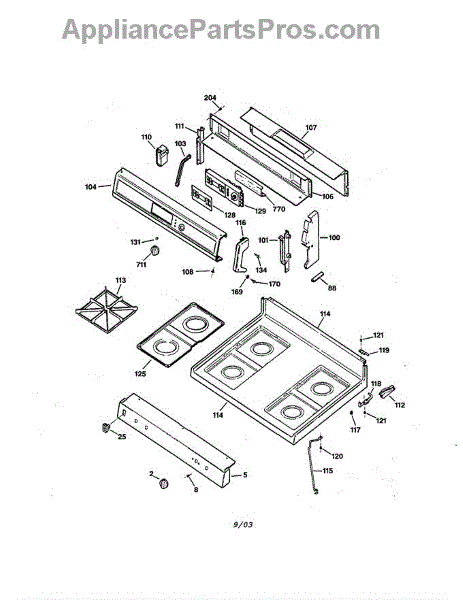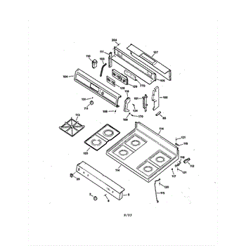 Parts for Ge JGB26WEA1WW: Control Panel And Cooktop Parts