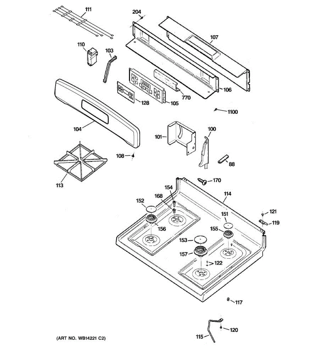 Parts for Ge JGB290DEN1BB: 02 - Control Panel & Cooktop Parts