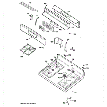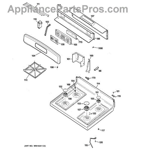 Parts for Ge JGB290DEN4BB: 02 - Control Panel & Cooktop Parts