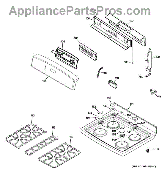 Parts for Ge JGB902BEH1BB: 02 - Control Panel & Cooktop Parts