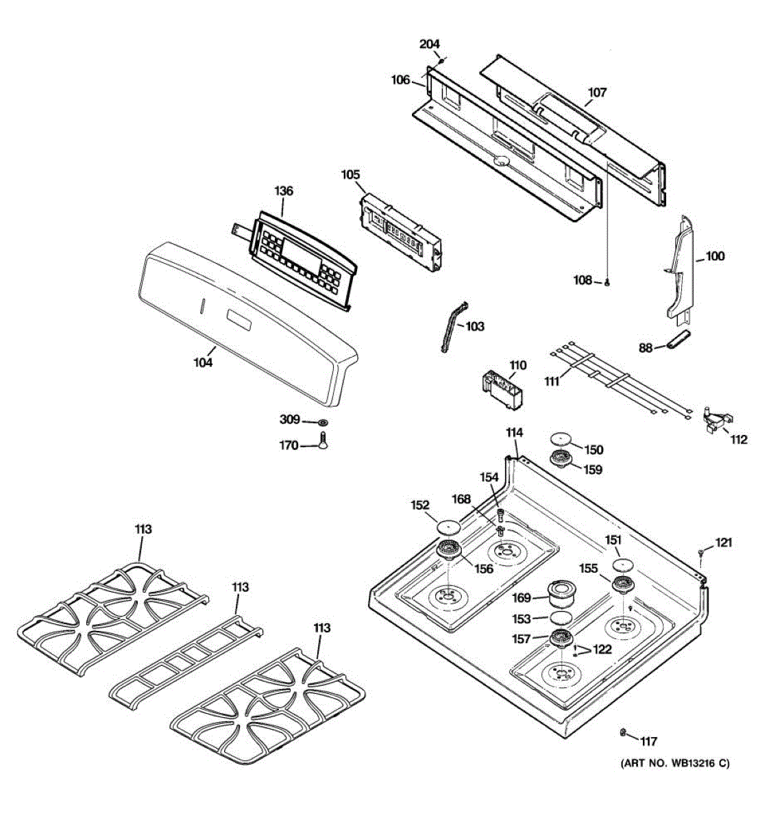 Parts for Ge JGB905CEF3CC: 02 - Control Panel & Cooktop Parts