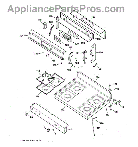 Parts for Ge JGBP25BEC1WH: 02 - Control Panel & Cooktop Parts