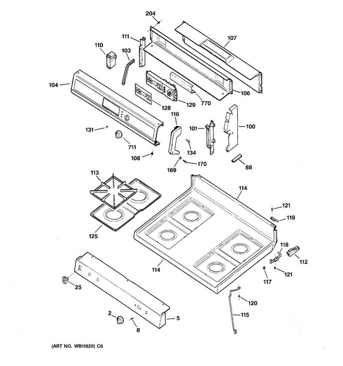 Parts for Ge JGBP25BEC2WH: 02 - Control Panel & Cooktop Parts