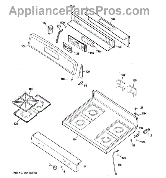 Upper back cover panel for gas ranges. Replaces cracked, damaged, or missing housing cover on the rear upper section. Restores appearance and protects.