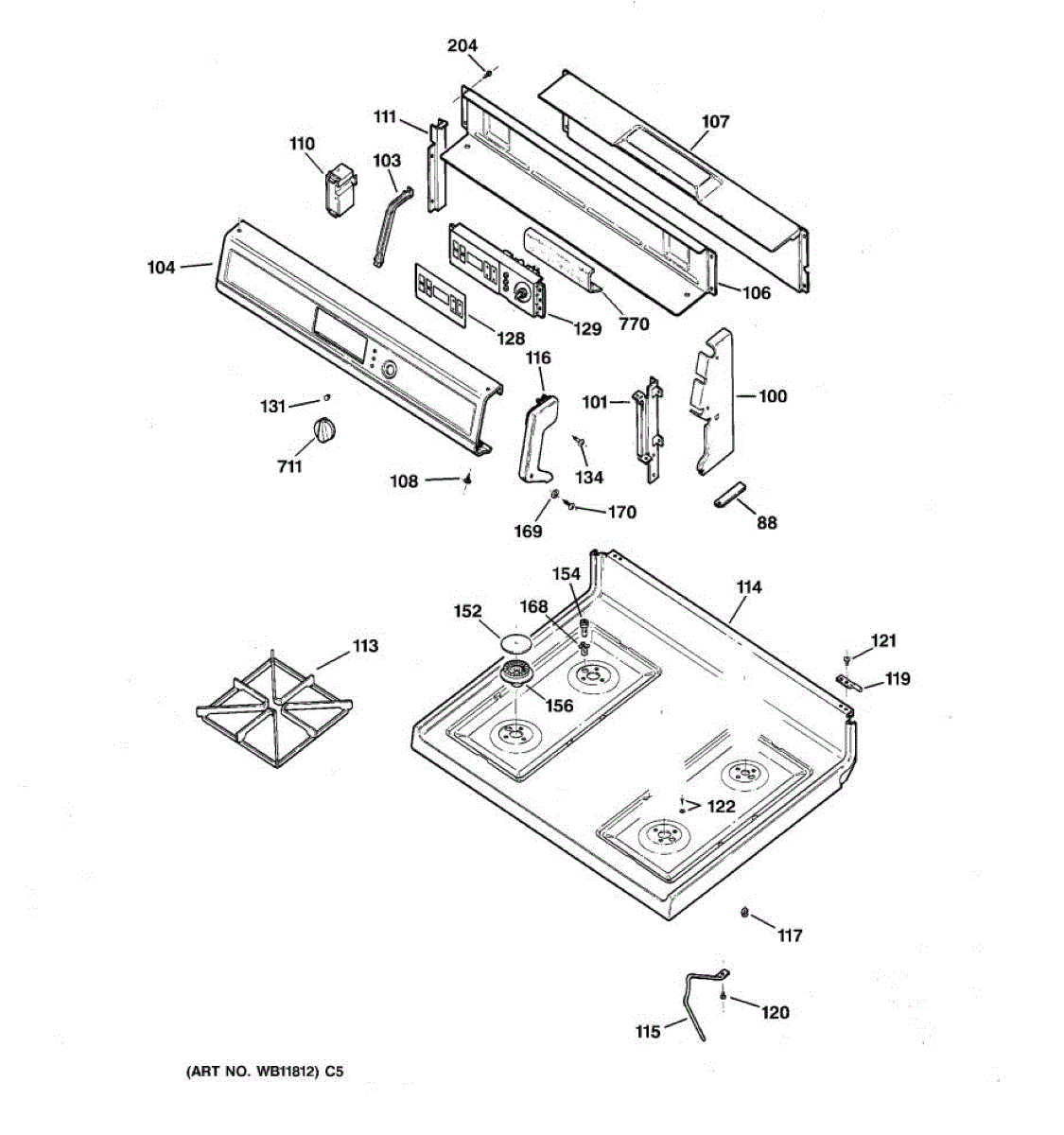Metal main top for your range. Replaces a cracked, chipped, stained, or damaged cooktop surface. Direct replacement restores appearance and function.