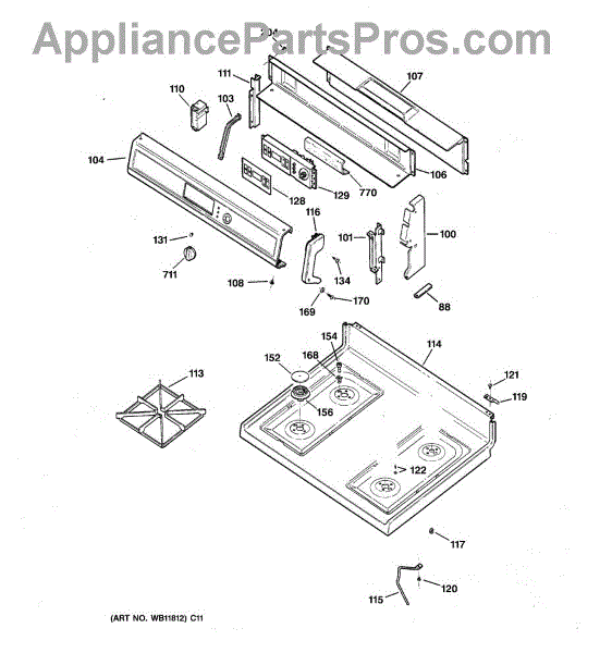Parts for Ge JGBP28BEA4AD: 02 - Control Panel & Cooktop Parts