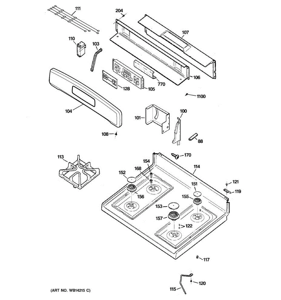 Parts for Ge JGBP28EEM1WH: 02 - Control Panel & Cooktop Parts