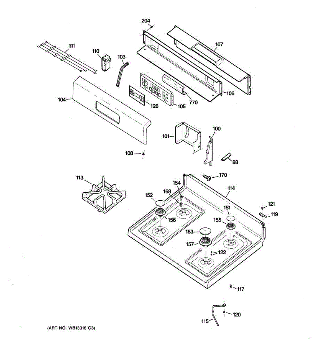 Parts for Ge JGBP29SEL3SS: 02 - Control Panel & Cooktop Parts