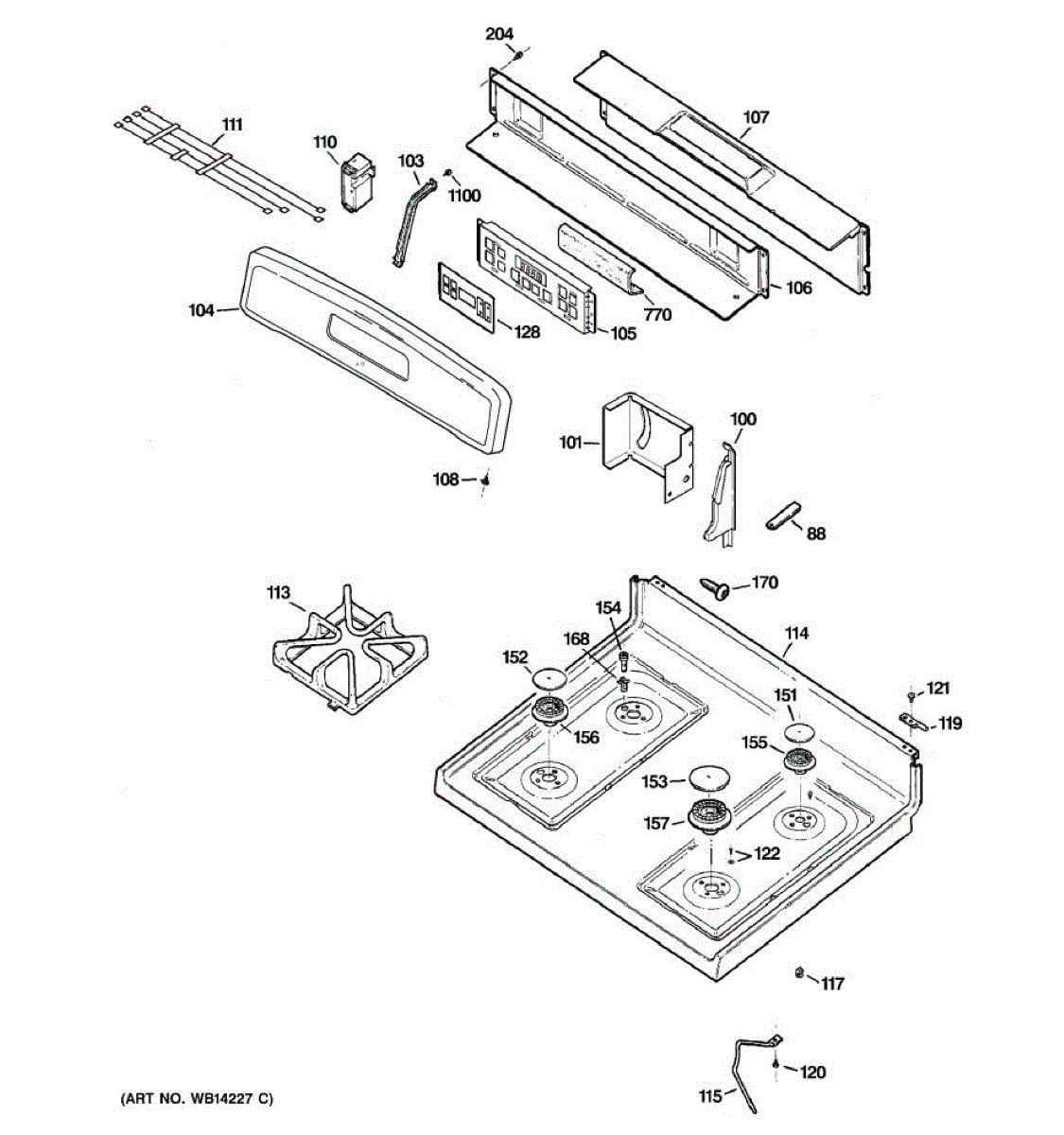 Parts for Ge JGBP29SEM1SS: 02 - Control Panel & Cooktop Parts