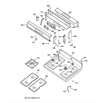 Replacement grate kit for GE gas ranges. Includes 4 burner grates for cooktop surface. Replace cracked, broken, or worn grates to restore appearance.