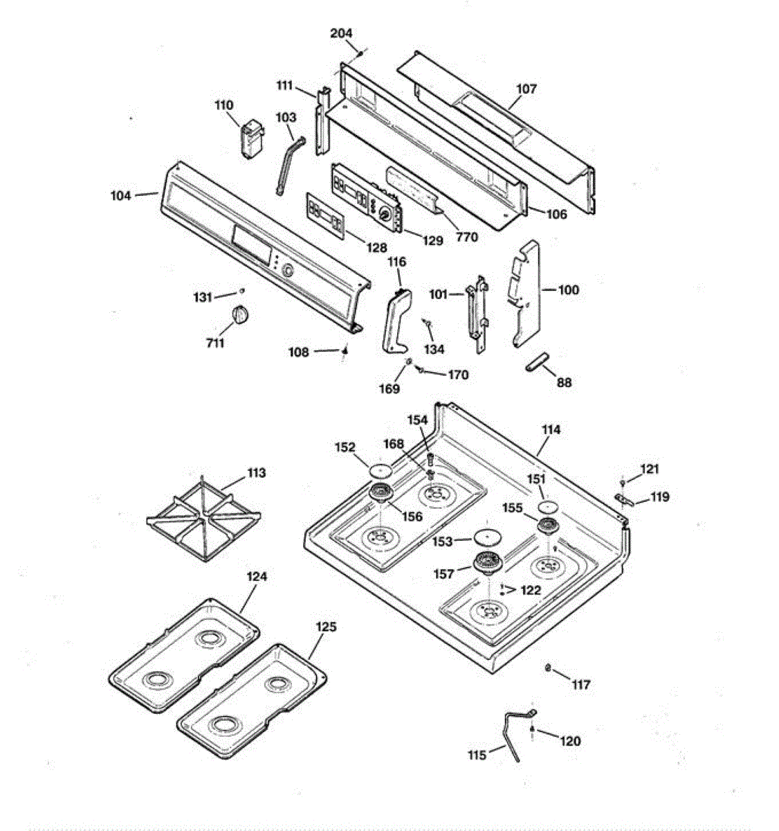 Parts for Ge JGBP30BEA3WH: Control Panel & Cooktop Parts