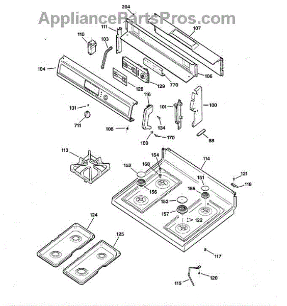Parts for Ge JGBP32WEF1WW: Control Panel & Cooktop Parts