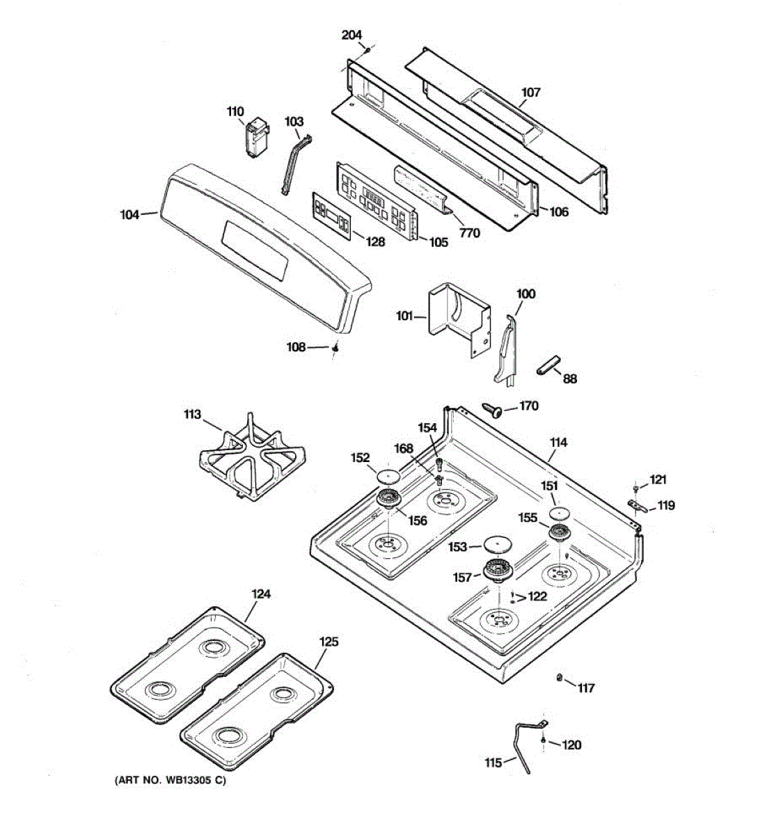 Top support plate for gas ranges. Mounts beneath the cooktop surface to provide structural reinforcement. Replace if cracked, bent, or damaged.