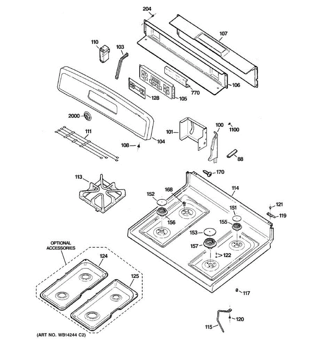 Top support plate for gas ranges. Mounts beneath the cooktop surface to provide structural reinforcement. Replace if cracked, bent, or damaged.