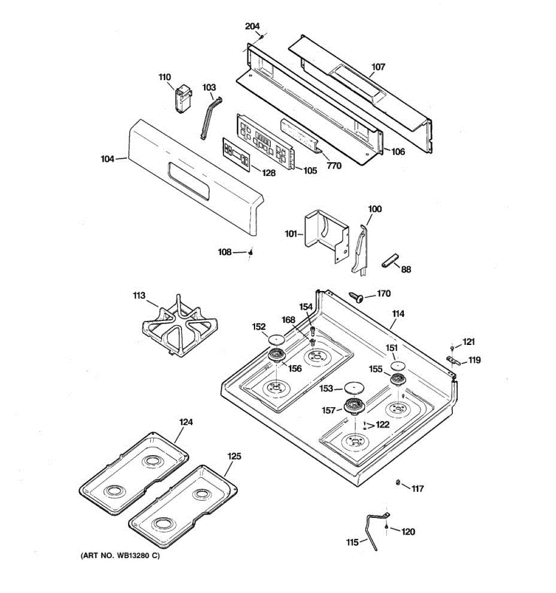 Metal main top surface for your range. Covers the burner area and supports grates. Replace if yours is cracked, chipped, warped, or damaged.