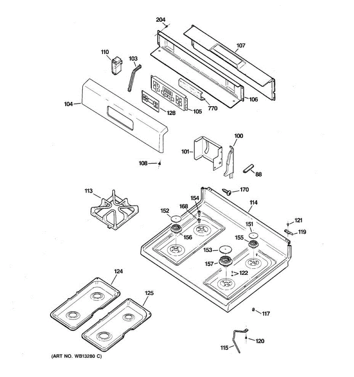 Metal main top surface for your range. Covers the burner area and supports grates. Replace if yours is cracked, chipped, warped, or damaged.
