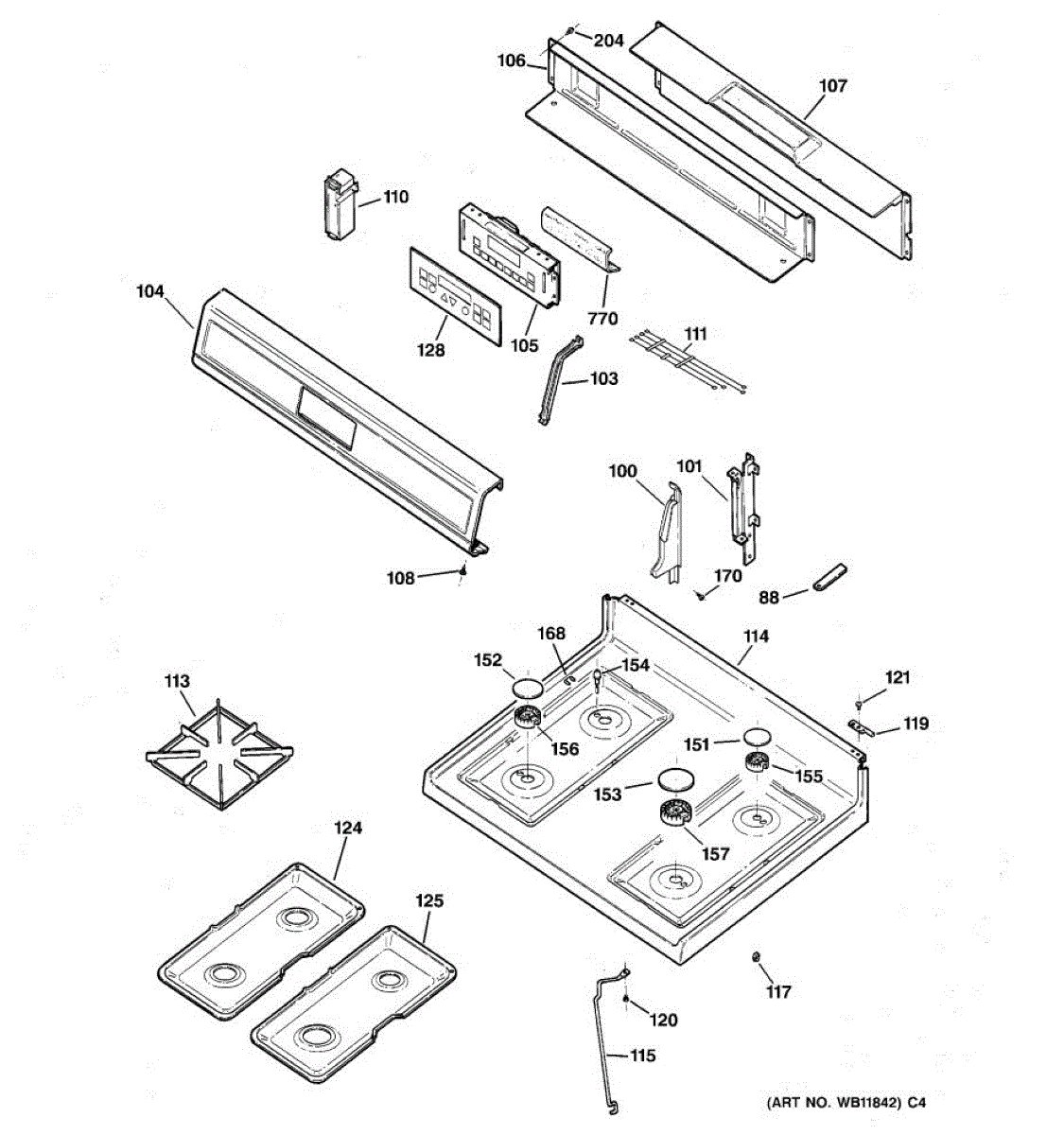 Metal main top surface panel for gas ranges. Replaces cracked, chipped, or worn cooktop surfaces. Direct fit replacement for the stovetop cooking area.