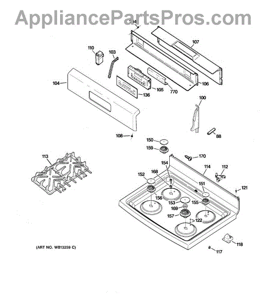 Parts for Ge JGBP36BEJ2BB: 02 - Control Panel & Cooktop Parts