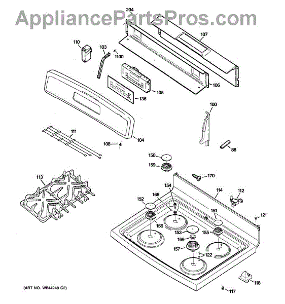 Parts for Ge JGBP36DEM3CC: 02 - Control Panel & Cooktop Parts