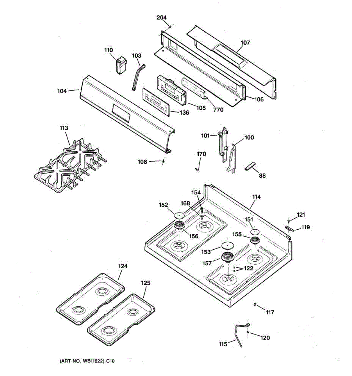 Parts for Ge JGBP83SEH1SS: 02 - Control Panel & Cooktop Parts