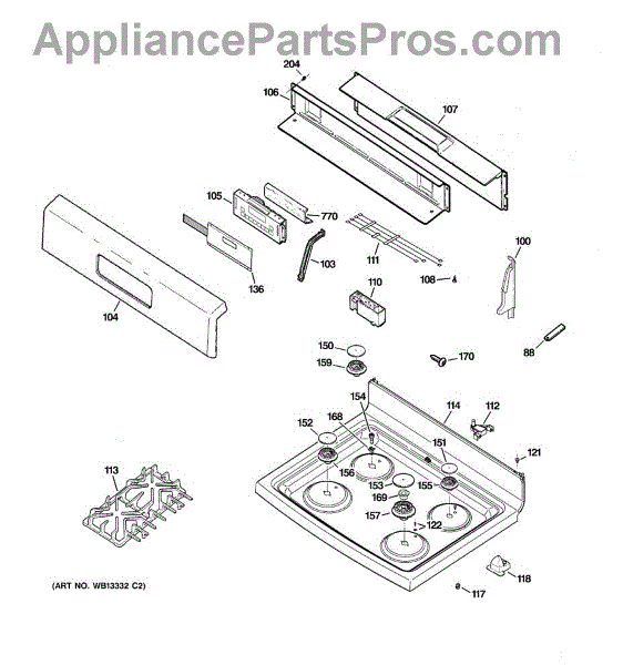 Parts for Ge JGBP85BEJ2BB: 02 - Control Panel & Cooktop Parts