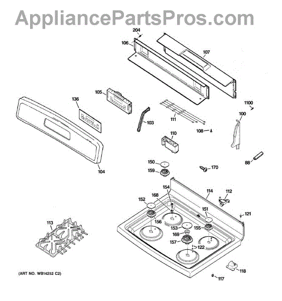 Parts for Ge JGBP85DEM3WW: 02 - Control Panel & Cooktop Parts