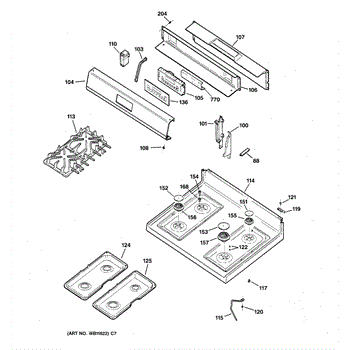 Top support plate for gas ranges. Mounts beneath the cooktop surface to provide structural reinforcement. Replace if cracked, bent, or damaged.