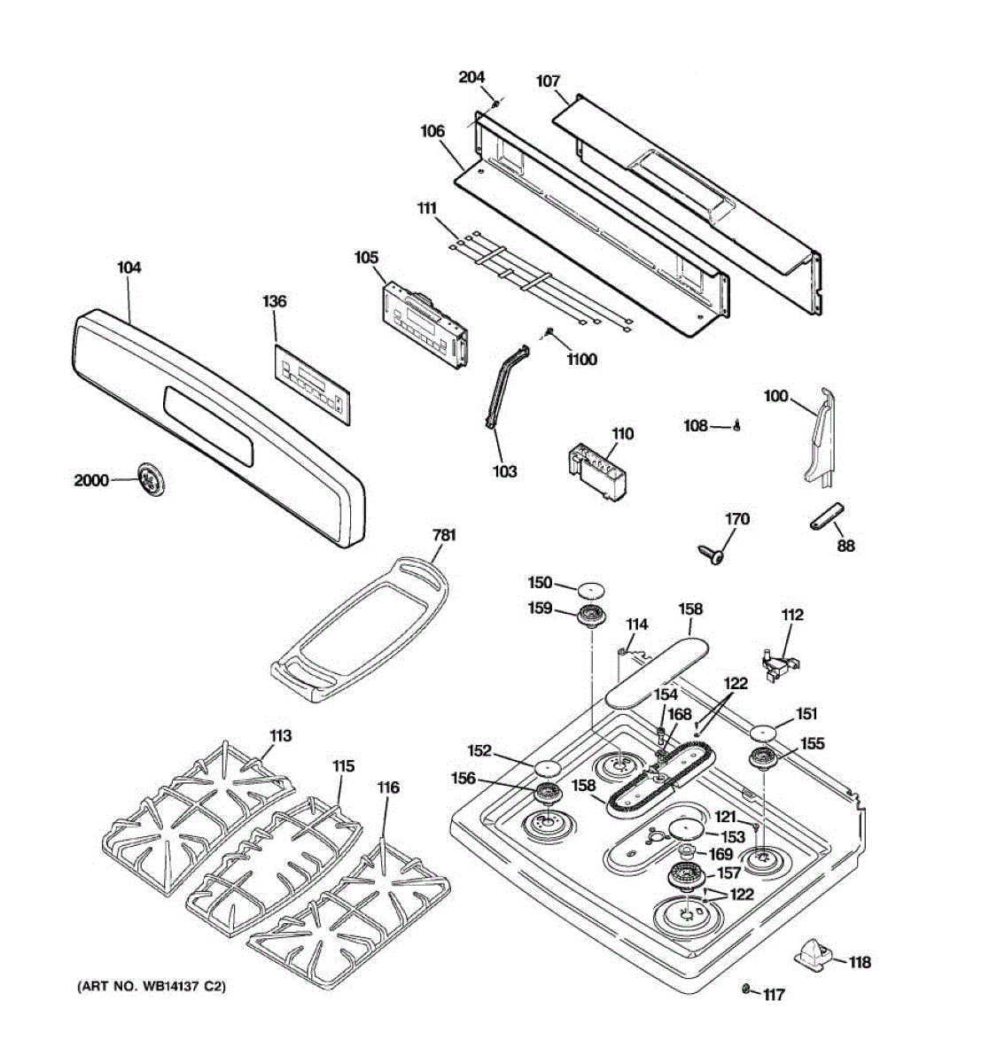 Parts for Ge JGBP88DEM3WW: 02 - Control Panel & Cooktop Parts