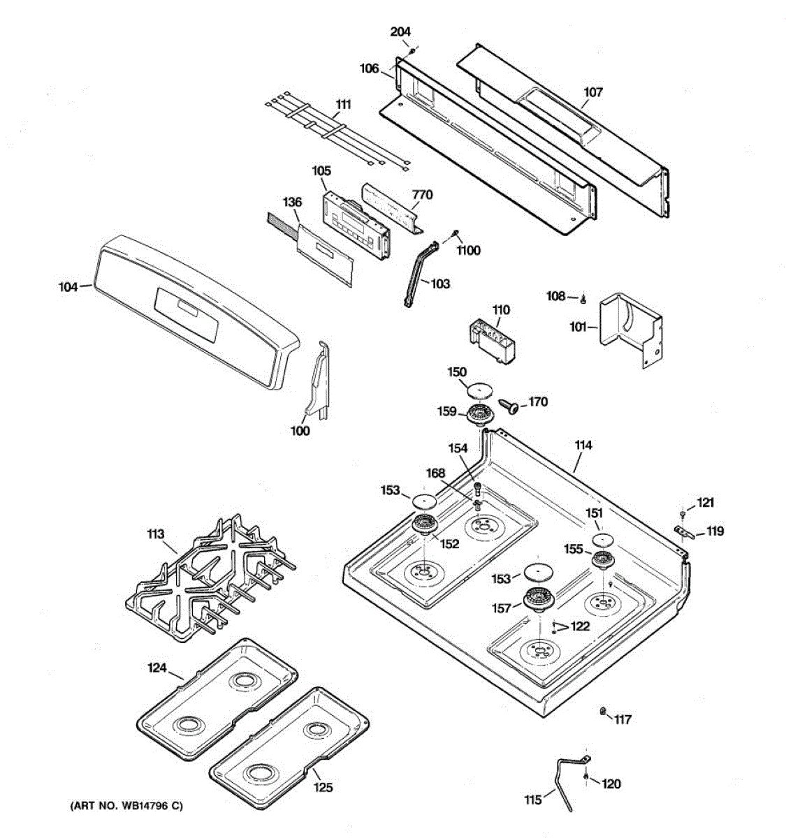 Top support plate for gas ranges. Mounts beneath the cooktop surface to provide structural reinforcement. Replace if cracked, bent, or damaged.