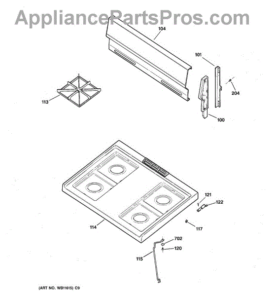 Bisque metal cooktop panel that covers the top of your gas range. Replace this flat cooktop if yours is rusted through, cracked, or damaged beyond repair.