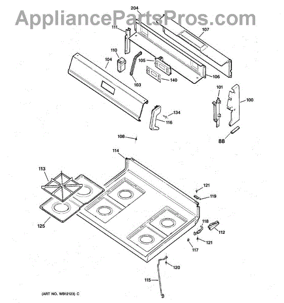 Parts for Ge JGBS20BEA3WH: 02 - Control Panel & Cooktop Parts