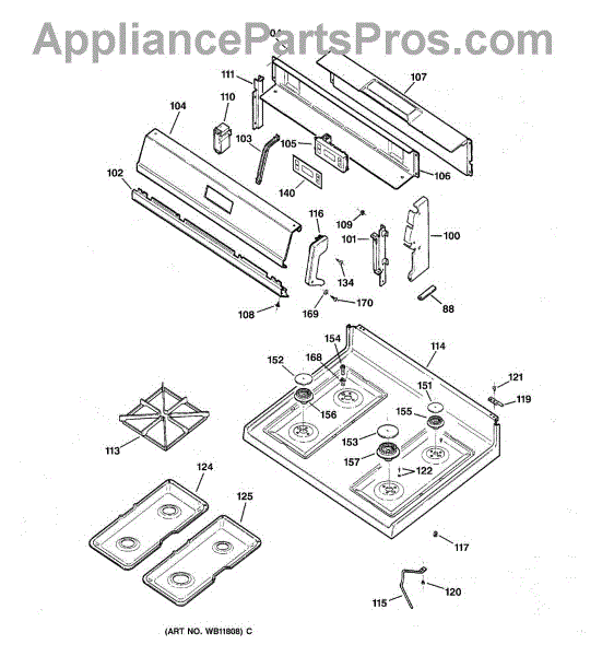 Parts for Ge JGBS23BEA1WH: 02 - Control Panel & Cooktop Parts
