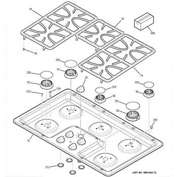 Replacement burner grate assembly for gas cooktops. Supports pots and pans over burners. Replace if cracked, worn, or missing for safe cooking.