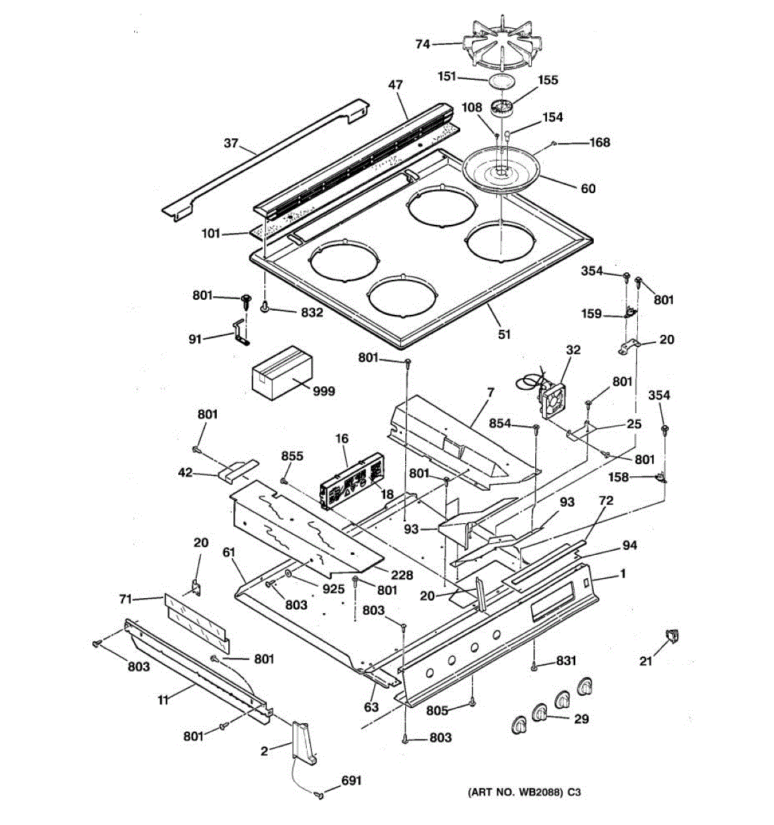 Mounting screw for range or cooktop installation. Secures components during assembly. Replace if lost, stripped, or corroded. Essential hardware piece.