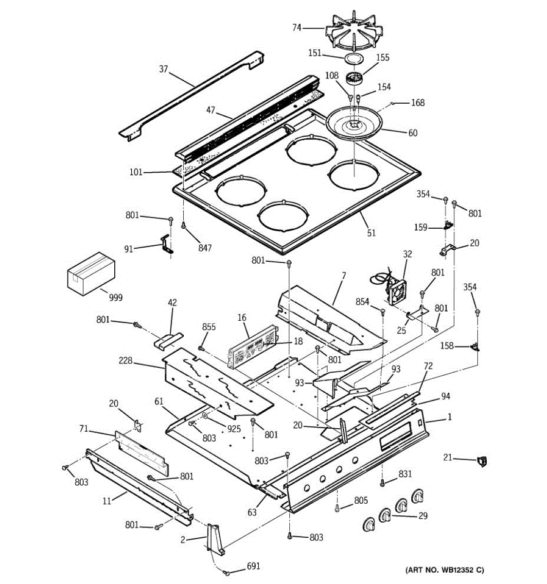 Parts for Ge JGSP23BEY4BB: 01 - Control Panel & Cooktop Parts