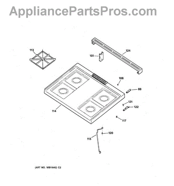 The Burner Grate is an OEM part for GE ranges. It provides a stable platform for cookware over the burner, ensuring even heating and safety during cooking. The grate is designed to withstand high temperatures and support various sizes of pots and pans. The grate has approximate dimensions of 8 1/2 inches wide by 8 1/2 inches deep.