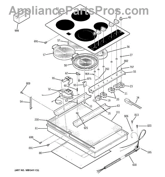 Retainer wire secures internal cooktop components. Replaces worn, broken, or missing wire that no longer holds parts in proper position.
