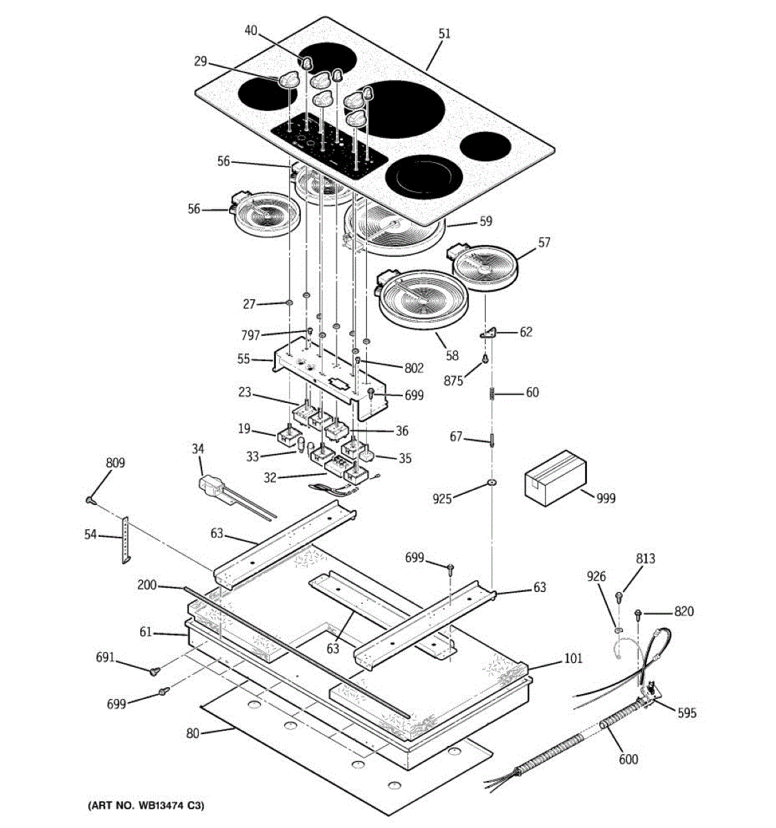 Clear protective tape secures glass panels and components on your cooktop. Replace when tape loses adhesion or during glass panel repairs. Confirm fit.