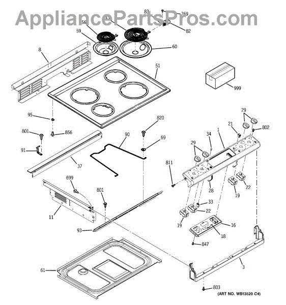 Parts for Ge JSP39BK3BB: 01 - Control Panel & Cooktop Parts