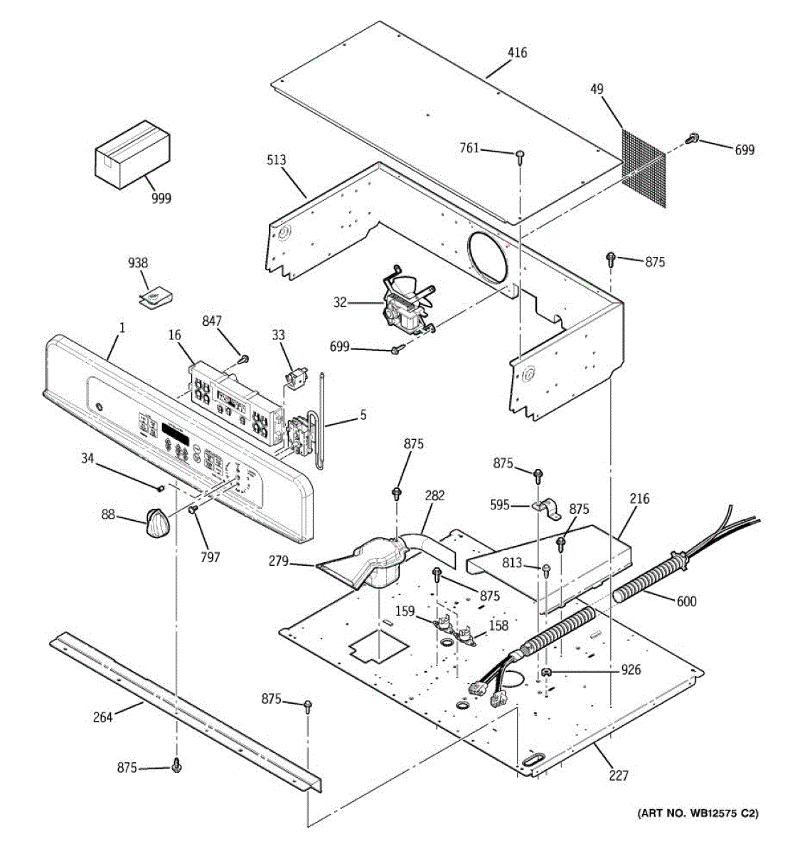 Oven vent box assembly that routes hot air and steam from the cooking cavity. Replace if cracked, damaged, or missing to restore proper ventilation.