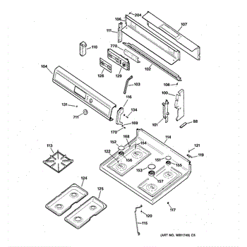 Metal main top surface panel for gas ranges. Replaces cracked, chipped, or worn cooktop surfaces. Direct fit replacement for the stovetop cooking area.