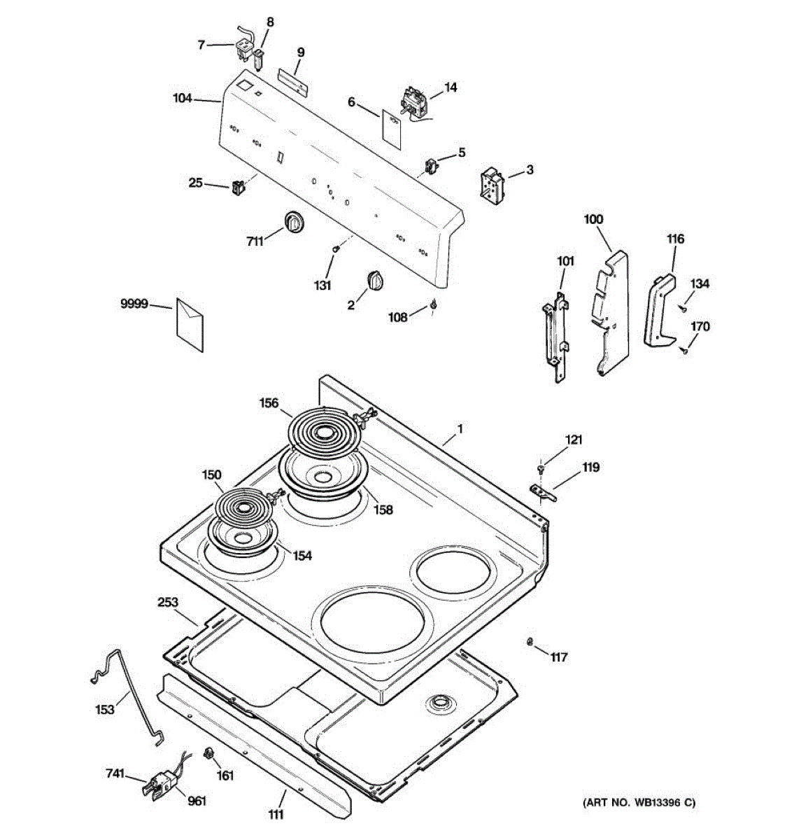 White metal cooktop panel for electric ranges. Replaces chipped, cracked, marred, or discolored main tops. Direct fit surface component for your range.