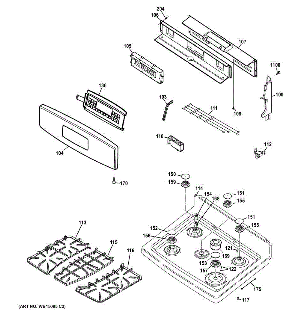 Cast iron grate that supports pots and pans over the burner. Replaces a cracked, broken, or missing cooktop grate to restore a stable cooking surface.
