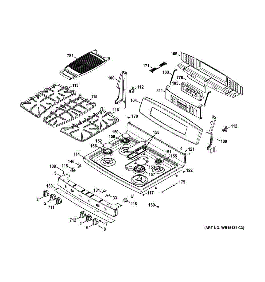 Cast iron grate that supports pots and pans over the burner. Replaces a cracked, broken, or missing cooktop grate to restore a stable cooking surface.