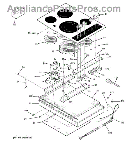 Retainer wire secures internal cooktop components. Replaces worn, broken, or missing wire that no longer holds parts in proper position.