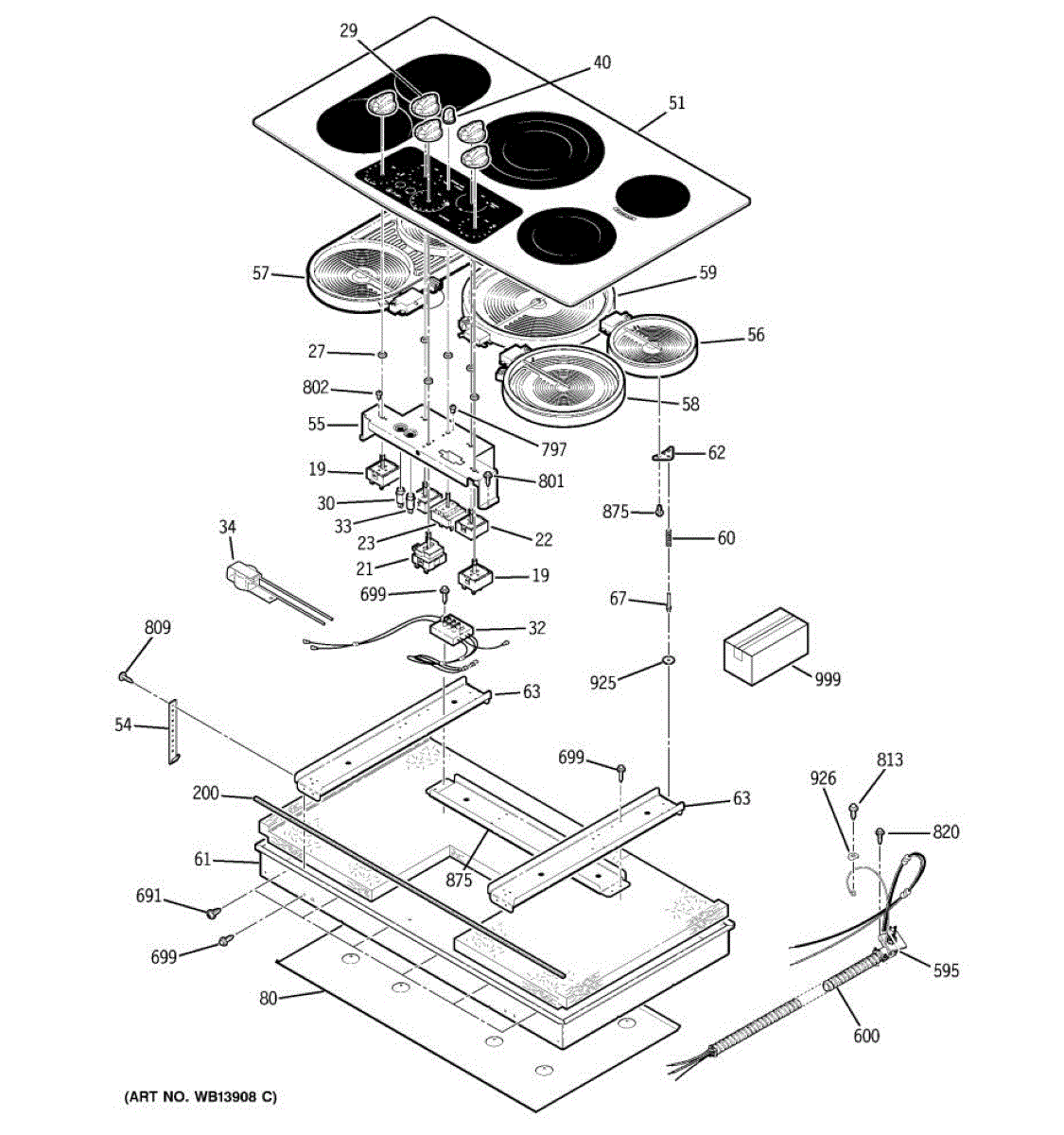 Mounting plate that secures and supports the wiring harness in your cooktop. Replace if cracked, broken, or missing to properly secure electrical connections.