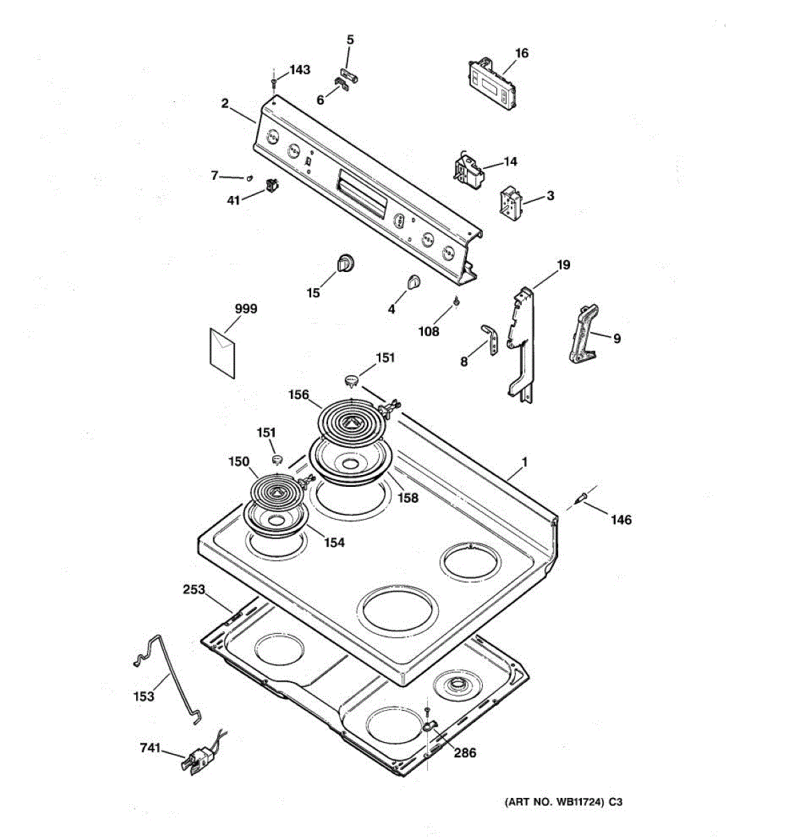 Parts for Ge RB533GW3: 01 - Control Panel & Cooktop Parts