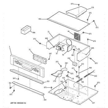Oven vent box assembly that routes hot air and steam from the cooking cavity. Replace if cracked, damaged, or missing to restore proper ventilation.